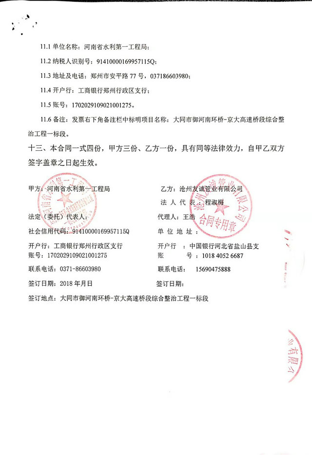 河南省水利第一工程局大同市御河南環水利項目
